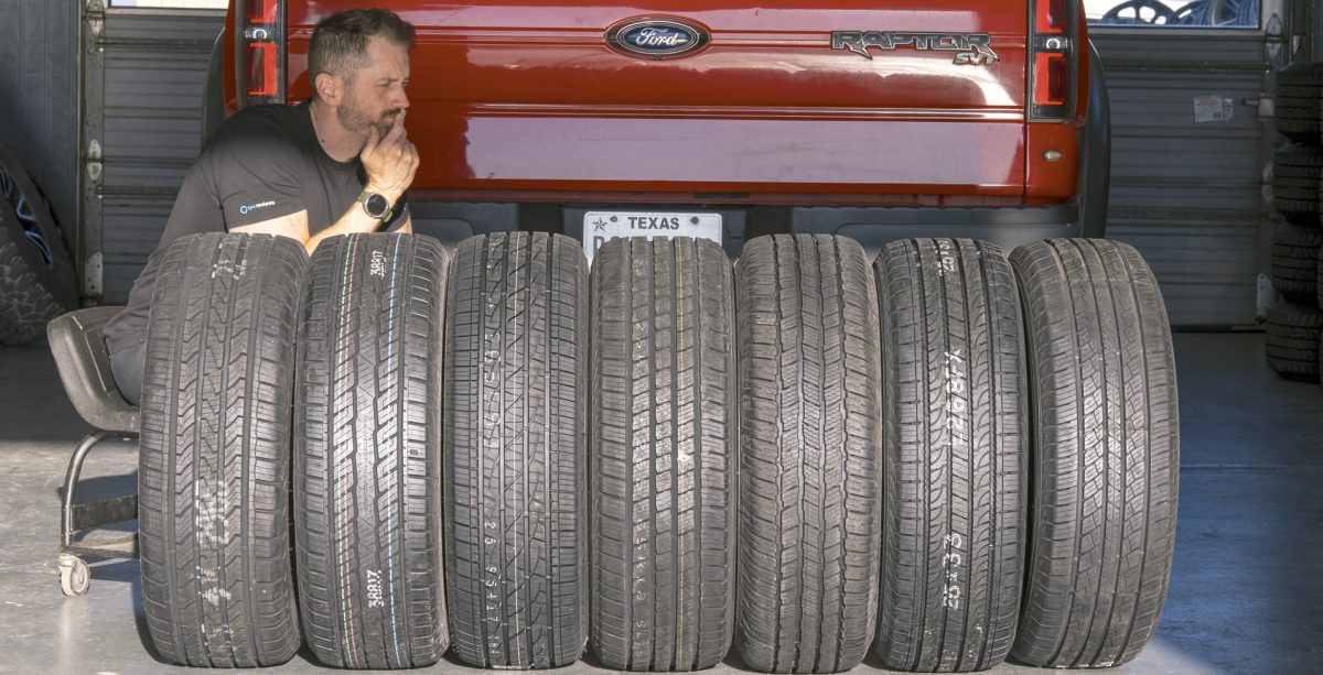 Per questo test ho selezionato sette tra i pneumatici HT più popolari attualmente in commercio, tutti nella misura 265/65 R18, che coprono praticamente ogni fascia di prezzo disponibile presso un gommista statunitense. Troviamo il punto di riferimento del segmento, il Michelin Defender LTX M/S2, insieme al nuovissimo General Grabber HT, opzioni di fascia media di Cooper (Endeavor Plus), Firestone (Destination LE3), Kumho (Crugen HT51) e Yokohama (Geolandar HT G056), e un pneumatico economico, il Westlake SU318 HT, per scoprire quanto si è evoluto il segmento dei pneumatici a basso costo. La domanda a cui volevo rispondere è quella che credo si pongano la maggior parte dei proprietari di pick-up: spendere di più significa davvero avere un pneumatico migliore?