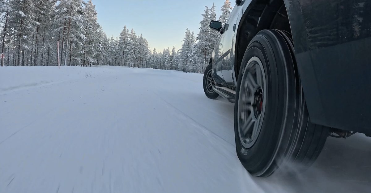 Per la trazione sulla neve, accelero il veicolo da fermo su una superficie innevata battuta con il controllo di trazione attivo e misuro velocità e tempo utilizzando la telemetria GPS. In genere utilizzo una finestra di misurazione di 5-35 km/h per ridurre l'influenza dei transitori di partenza e delle irregolarità della trasmissione. Utilizzo un'ampia VDA (area dinamica del veicolo) e mi sposto progressivamente sulla superficie tra una prova e l'altra in modo che nessun pneumatico acceleri mai due volte sullo stesso tratto di neve. La superficie viene battuta regolarmente durante la sessione. Eseguo più prove per ogni set di pneumatici e calcolo la media dei risultati validi. I pneumatici di riferimento vengono generalmente utilizzati ogni due set di pneumatici candidati per correggere le variazioni delle condizioni della superficie innevata.
